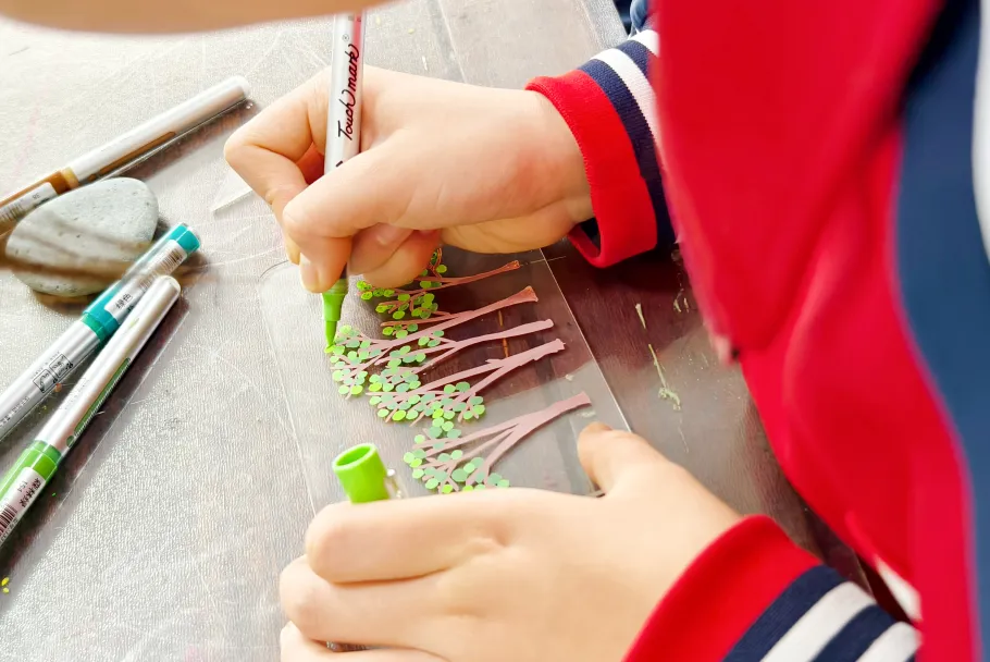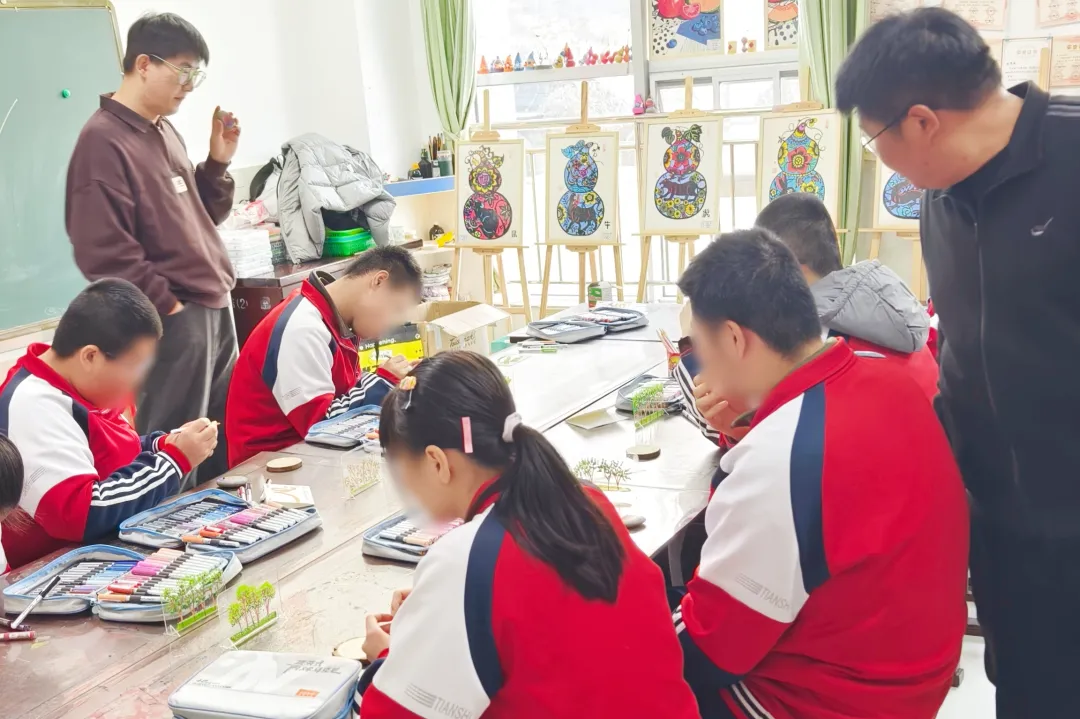 Touchmark 捐赠的画材分发到每一位孩子手中,孩子们在老师的引导下,用稚嫩的笔触认真勾勒心中的绿意,每一抹色彩都是他们对世界的美好想象。
